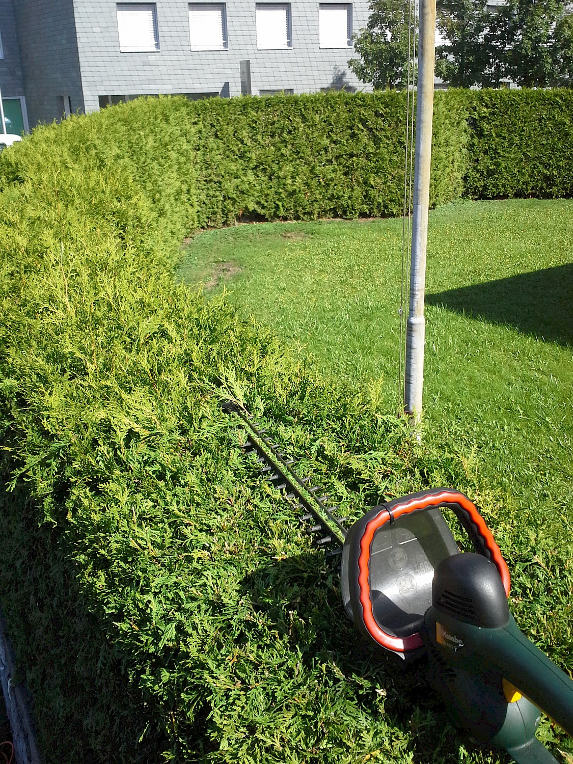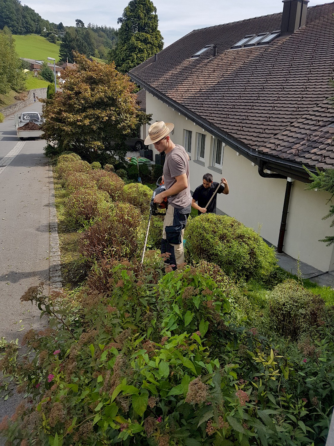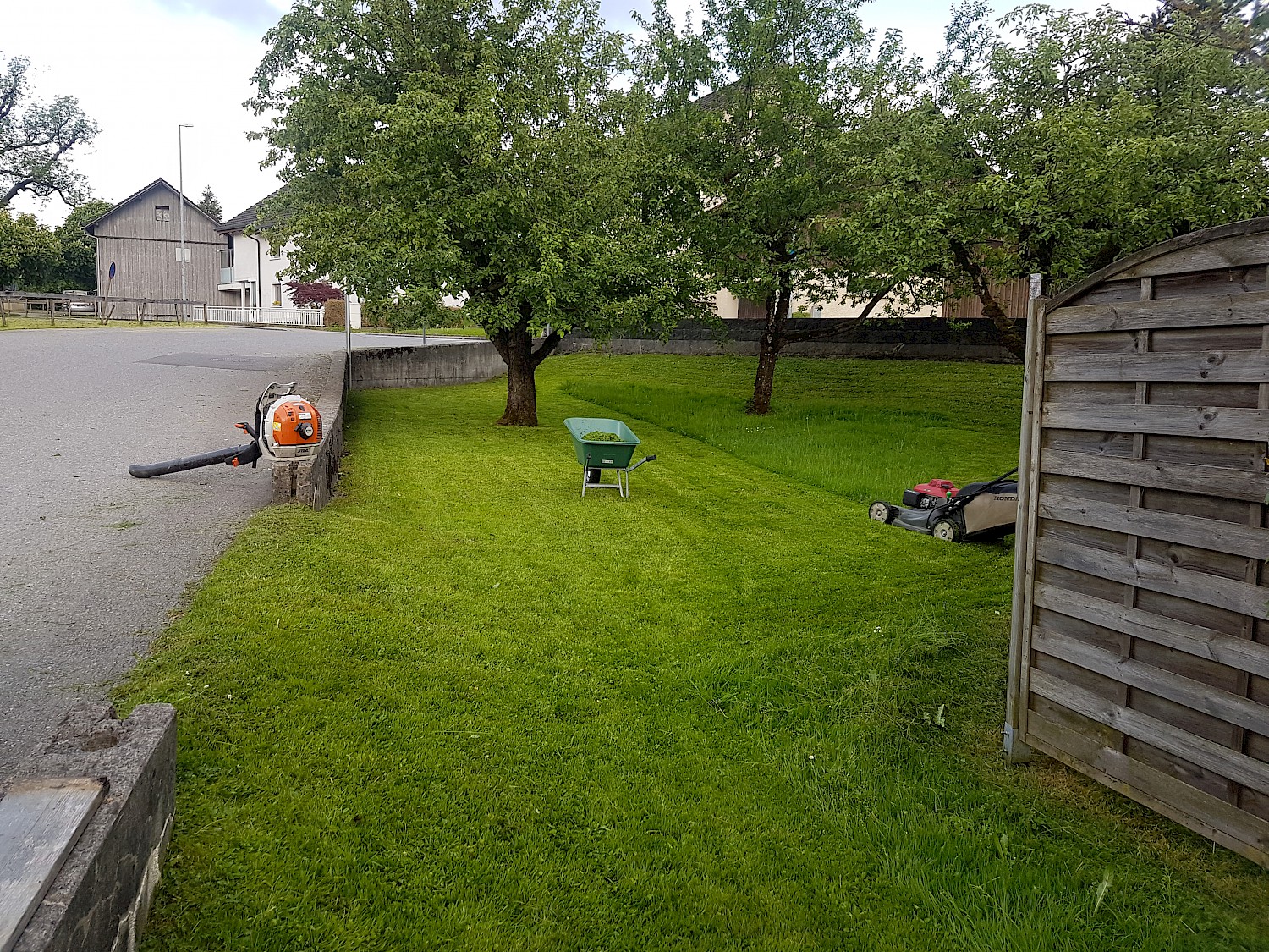 Hausmeisterarbeiten wie Rasen mähen, Hecken schneiden, Vertikutieren, Schnee schaufeln, kehren – dabei helfen wir gerne. Wir entsorgen auch gleich den anfallenden Grünmüll.
